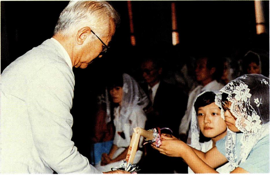 세례 지원기인 예비 신자 교육 기간은 하느님의 자녀로 변모되어 가는 시기(왼쪽)이며, 이를 거쳐 입교 성사로 인도된다.