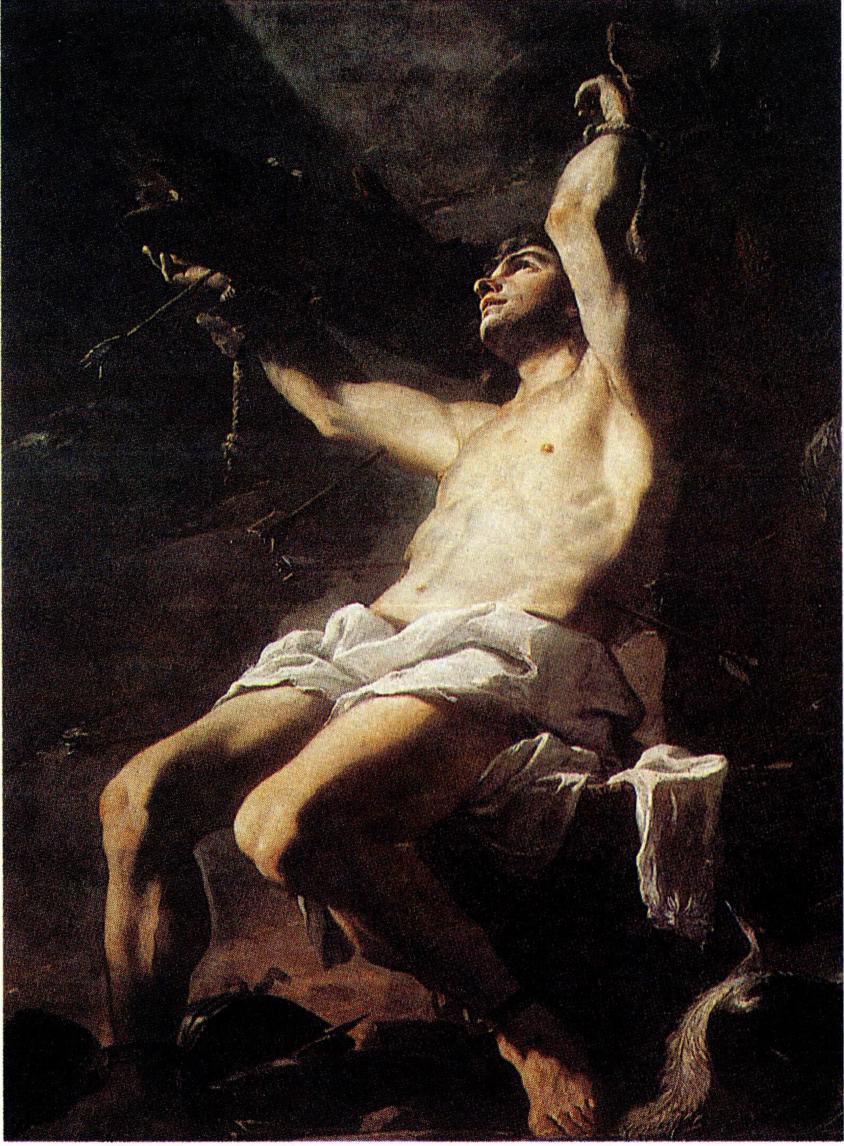 〔생애와 전설〕 450년경 아르노비오(Arnobius)라는 수 도자에 의해 쓰여진 《성 세바스티아노의 수난기》(Pasio S. Sebastiani) 외에 5세기경에 쓰여진 그의 행전들이 전하 는데, 이 작품들은 다소 역사적인 확실성이 부족한 전설 적인 이야기에 가깝다. 이에 따르면 세바스티아노는 고 향에서 누리던 화려한 경력을 포기하고 감옥에 갇힌 그 리스도인들을 가까이에서 돌보기 위해 283년경에 로마 군대에 입대하였다. 디오클레티아누스 황제의 신임을 얻 어 황제를 호위하는 친위대의 지휘관이 된 그는 박해로 붙잡혀 온 신자들을 비밀리에 도와 주었는데, 감옥에 갇 힌 마르코(Marcus)와 마르첼리노(Marcellianus) 형제 증거 자들에게 용기를 북돋아 주었고, 다른 여러 순교자들이 고통과 죽음을 인내롭게 견디도록 용기를 북돋아 주었으 며, 붙잡힌 신자들을 감시하던 교도관들을 개종시키기도 하였다. 처음에 디오클레티아누스 황제는 세바스티아노가 그리스도교 신자라는 사실을 알지 못하였지만 그리스 도인들에게 행한 자신의 잔인하고 포악한 행위를 세바스 티아노가 공공연히 비난하자, 286년경에 한 배교자의 고발을 통하여 그가 신자라는 사실을 확실히 알게 되었 다. 세바스티아노는 두려움도 없이 황제 앞으로 나가 자 신이 예수 그리스도의 제자라고 고백하였다. 황제가 그 에게 "나는 너에게 총애를 베풀었고, 너는 내 궁정에서 살았다. 그런데 네가 황제와 신들의 적이란 말인가?" 하 고 묻자 세바스티아노는 "나는 항상 당신의 구원과 이 왕국의 개종을 위하여 예수님께 기도하였습니다. 그리고 나는 항상 천상의 하느님을 흠숭해 왔습니다" 라고 응답 하였다. 황제는 격노하여 그를 모리타니아의 궁수들에게 넘겨 온몸에 수많은 화살을 맞아 죽게 하였다. 그러나 온 몸에 화살이 박힌 채 쓰러져 있는 세바스티아노를 우연 히 발견한 카스툴로(Castulus) 순교자의 미망인인 이레네 (Irene)가 그를 정성껏 간호하여 기적적으로 회생시켰다.