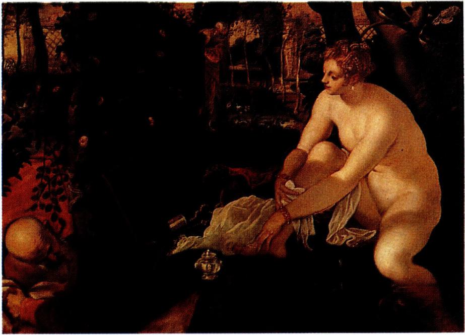 목욕하는 수산나와 훔쳐보는 두 명의 원로 재판관을 묘사한 그림도 많이 제작되었는데, 특히 틴토레토(J. Tintoretto, 1518~1594)의 작품이 가장 유명하며, 베로네제(Veronese, 1528?~1588) , 루벤스(P.P. Rubens, 1577~1640) ,반 데이크(A. van Dyck, 1599~1641) 역시 이 주제로 성화를 제작하였다. (→ 다니엘서)