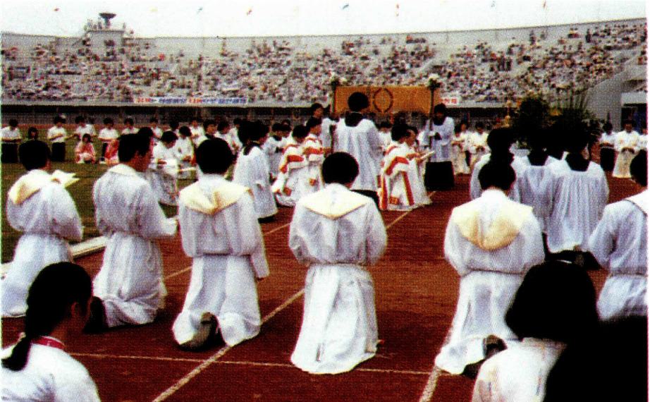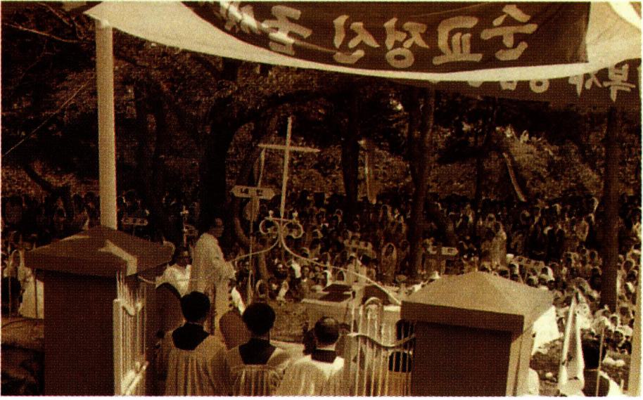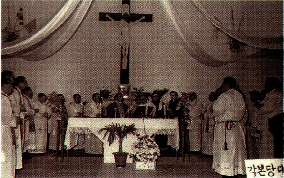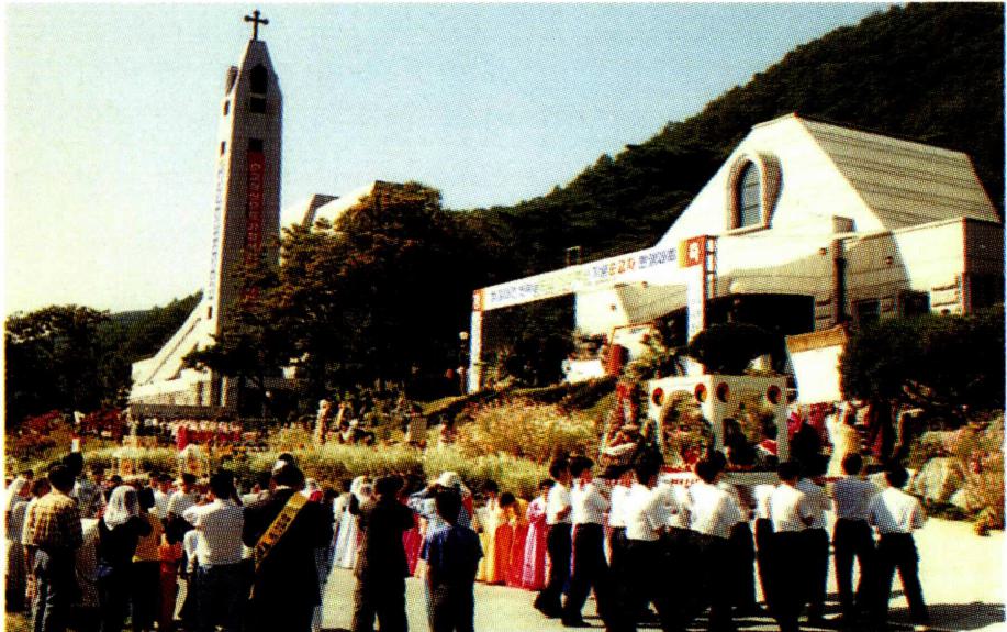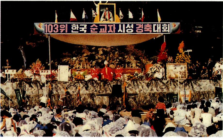 1984년은 한국 천주교회 창설 200주년 기념 대회 및 103위 시성식이 거행된 해였다. 이에 교구 56개 본당에서 47,000여 명의 신자들이 5월 6일 여의도 광장에서 열린 이 행사에 참여하였고, 이를 기념하기 위해 교구에서는 9월 30일 미리내에서 103위 한국 순교자 시성 경축 대회를 개최하였다. 또 같은 해 2월 2일에는 미리내 성모 성심 수녀회가 설립되었으며, 8월에는 신언회, 이 듬해 10월에는 천주의 섭리 수녀회, 12월 8일에는 마리스타 교육 수사회가 각각 수원에 진출하였다. 1984년10월 30일에는 성체 분배권자(수도자) 교육이 처음 실시되었으며, 그 해 11월부터는 수원교구에서 활동하다가 사망한 성직자들의 무덤이 미리내 성직자 묘역으로 이장되었다.