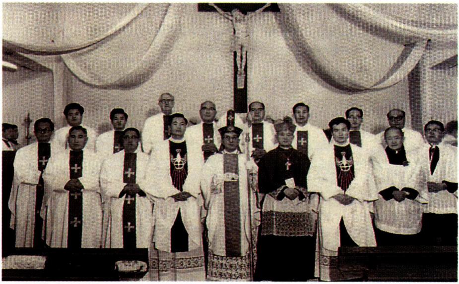 1963년 10월 20일, 주교 수품 직후 교황 바오로 6세를 알현하고 있는 초대 수원교구장 윤공희 주교.