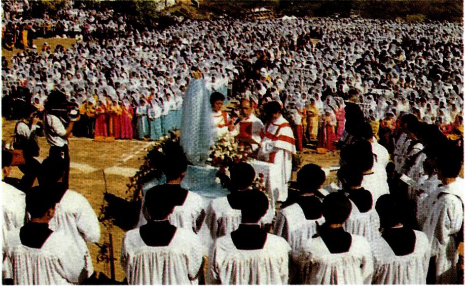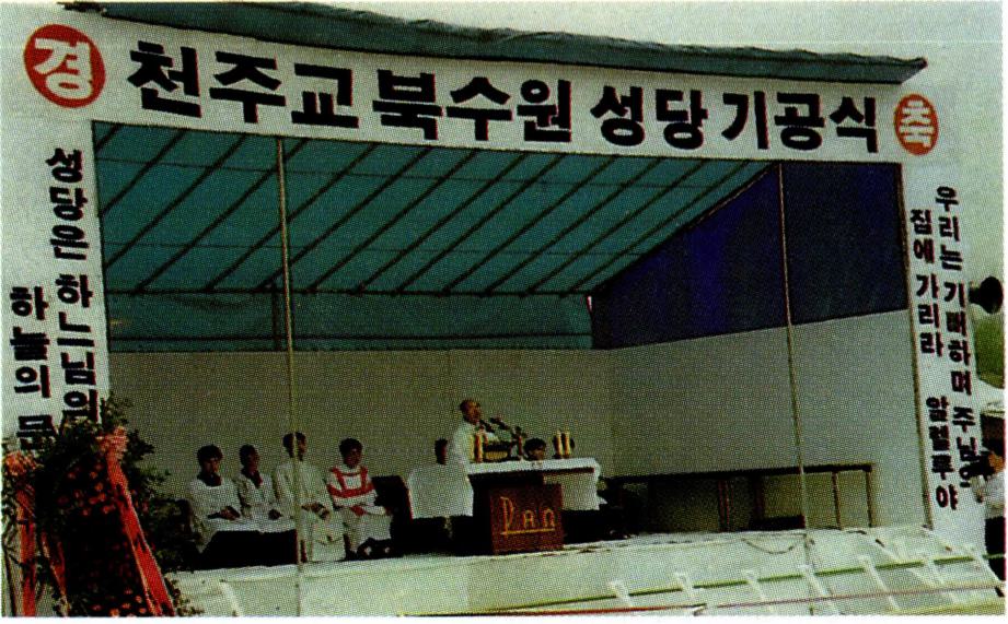 1986년 5월 10일에는 전 교구 차원의 성령 쇄신 대회가 수원 실내 체육관에서, 6월 1일에는 교구 성체 현양대회가 수원 공설 운동장에서 각각 개최되었다. 이어 6월 24일에는 100년 계획 천진암 대성당 건립위원회가 조직되었고, 7월에는 안성의 교구 묘원 허가를 받아 12월 10일에 이를 준공하였으며, 이듬해 9월에는 수원 가톨릭대학 신축 교사가 완공됨으로써 1988년 5월 6일 축복식을 가졌다. 또 1987년 9월 15일 이천의 어농리와 단내 성지 축복식이 있었고, 이듬해 4월 14일에는 양병묵(楊柄默, 루가) 신부가 제4대 총대리에 임명되었다. 그리고 1980년대 중반부터 전 사회적으로 일어나기 시작한 민주화 운동에 발맞추어 교구에서도 1987년 5월에 전 사제단이 대통령 직선제 개헌을 위한 단식 기도를 실시하고 정의와 평화를 위한 미사를 봉헌하였다.