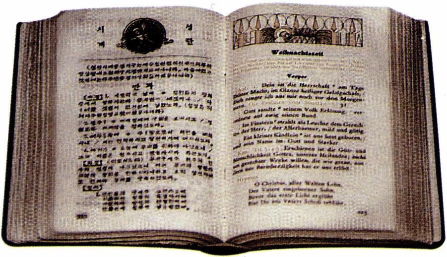 〔한국의 성무 일도] 최초의 한글본 성무 일도서는 상트 오틸리엔 수도원에서 사용하던 것을 로트(L. Roth, 洪泰華,1890~1950) 신부가 번역하여 1939년 11월 15일에 덕원 인쇄소에서 출판한 《수사 통경 기구》(修士通經祈求)이다. 이 성무 일도서가 발간되기 이전까지의 시간전례는 대부분 라틴어로 된 것이 사용되었다. 반면에 수녀들은 차일라이스(V. Zeileis, 1888~1957) 신부가 번역한 《수녀 기구 예절서》(Gebet und Zermonienbichlein fuir korea-nische Schwestern)를 사용하였으며, 아펠만(B. Appelmann, 1902~1975) 신부의 《예수 성탄 성무 일도)(Weihnachtsof- fizium, 1934), 《성주간 성무 일도>(Kanvocherofifun, 1934) . 《주일 · 부활 · 성령 강림 · 사도 축일의 만과》(Vesperalefiir Sontage · Ostern · Pfingsten · Apostelfeste, 1934), 《성녀아가다와 체칠리아의 성무 일도)(Offizien Zu den Festen der hl. Agatha und der hl. Caecilia, 1935) 등을 사용하였다. 《수사통경 기구》에는 각 시간경이 모두 수록되어 있고, 서론에는 시간 전례를 바치는 의미와 방법 및 그 예절이 설명되어 있다. 이 책의 발간으로 뜻도 제대로 이해하지 못하면서 라틴어로 낭송하거나 노래하던 시간 전례가 자국어로 바치게 됨으로써 수도 생활에도 많은 활력을 불어넣 어 주었다.