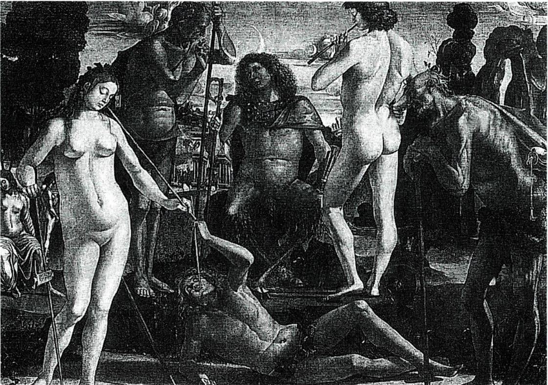 성 아우구스티노(354-430)는 "가장 난해한 상징이 가장아름다운 것"이라고 말했는데, 아마도 그가 1,100년 뒤인 르네상스 시기에 살았다면 시뇨렐리의 이 그림에 그와 같은 평가를 내렸을지도 모른다. 시뇨렐리는 이 그림속에 자신을 포함시켰다. 그의 옆에는 헤르메스와 한 님프의 아들로 태어난 자연의 신 즉 목신이 옥좌에 앉아 있고, 그의 하체에는 염소의 다리와 두 개의 굽으로 된 발이 달려 있다. 그 주변에는 피리를 불거나 생각에 빠진 전원의 목동 네 명이 모여 있는데, 그들의 나이는 모두 달라 보인다. 이들은 유년기 · 청년기 · 장년기 · 노년기라는 인간의 나이를 시각화한 것이다. 멀리 원경에 보이는 누드의 두 여인은 '멜랑콜리' (melancolie) 혹은 '불안'으로 해석되어 왔다. 신플라톤주의의 범신론을 바탕으로한 인문주의를 주제로 삼은 이 그림은 제2차 세계대전 때 소실되어 현재 흑백 사진으로만 남아 있는데, 오늘날까지도 해석에 대한 새로운 연구가 계속되고 있다.