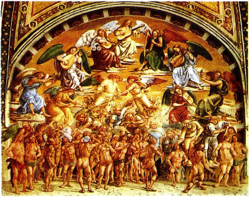 본래 안젤리코(F. Angelico, 1395?~1455)와 페루지노(P. Perugino, 1448~1523) 등도 제작 의뢰를 받았었지만 이들이 작품을 완성하지 못하자, 결국 1499년에 성당 참사 위원회에서는 시뇨렐리에게 전적으로 의뢰하였던 것이다. 시뇨렐리는 그 후 5년 간 성당 벽면의 작업대에 서서 주문받은 작품들을 완성해 냈다. 우선 그는 <반그리스도> · <최후의 심판> · <선택된 자들의 대관식>을 그린 뒤<육신의 부활> · <저주받은 자들> 등을 완성하였다. 르네상스 미술 중 시뇨렐리의 누드와 같이 다양한 포즈와 양을 따라가는 그림은 매우 드물다는 점에서 그가 얼마나 많은 해부학 연구를 하였는가를 잘 알 수 있다. 그리고 악마들의 다양한 모습들 역시 시뇨렐리의 충분한 상상력, 또 그에 대한 노련한 연구를 보여 주는 대목이다. 무리 지어 있는 나체의 저주받은 자들, 기이한 악마의 모