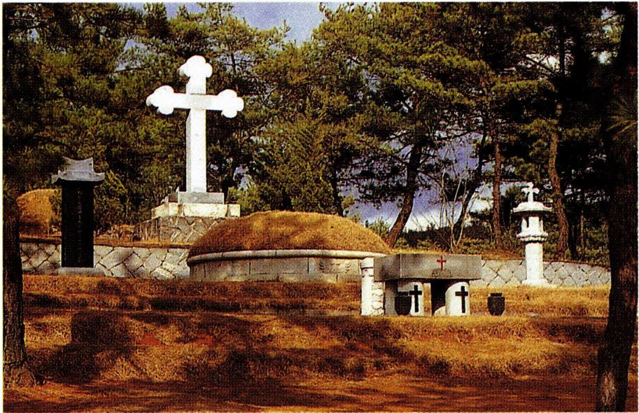 신나무골의 이선이 순교자 묘소(왼쪽)과 1977년 7월에 세워진 '대구 천주교 요람지' 순교비.