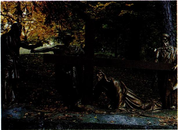 갈바리아를 향한 짧은 여정 역시 예수에게는 열정적인 만남의 공간이었다. 예수는 인간과 함께할 시간이 얼마남지 않았다는 것을 알고 있었지만 하느님 나라의 기쁜 소식을 다시 한번 선포하면서 위로와 용서의 심정을 드러내었다. 예수는 마리아와 만나서 서로의 위안과 연민, 무엇보다도 깊은 일치의 눈길을 주고받았다. 또 십자가의 짐을 나누는 키레네 사람을 만나(마르 15, 21) "영광의 무게" (2고린 4, 17)를 나누어 주기를 약속하였고, 자신을 보고 우는 예루살렘의 딸들을 만나서는 죄와 악에 대해 울라고 충고하였다(루가 23, 28). 자신과 함께 십자가에 달린 강도 중 한 강도의 모욕은 온화하게 참아 받은 반면, 다른 강도의 간청에는 용서와 우정과 생명의 말씀으로 응답하였다(루가 23, 42). 그리고 마침내 당신의 생을 마치면서 성부의 손에 자신의 영혼을 맡김으로써(루가 23, 46) "최상의 만남"인 성부와의 만남을 실현하였다.