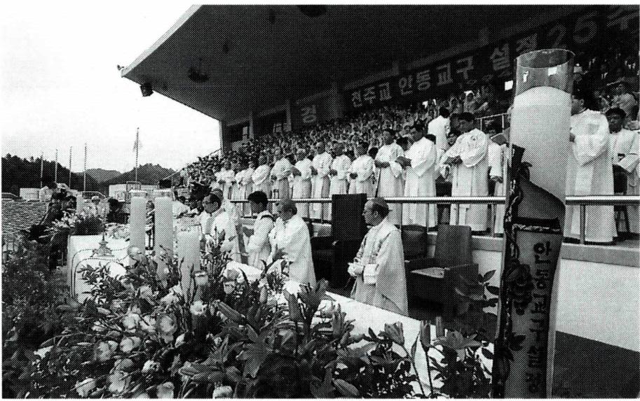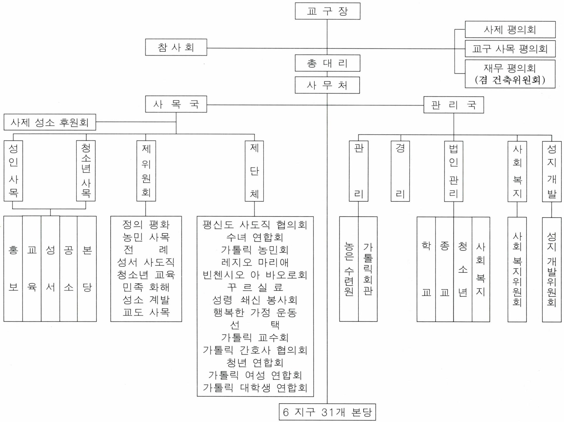 안동교구는 교구 설정 30년인 1999년 말 현재 총 신자수 43,437명, 본당수 31개, 공소수 84개, 성직자수 61명(외국인 및 수도회 소속 포함), 진출 수도회 21개인 교구로 성장하였다. (→ 대구대교구 ; 한국 천주교회)