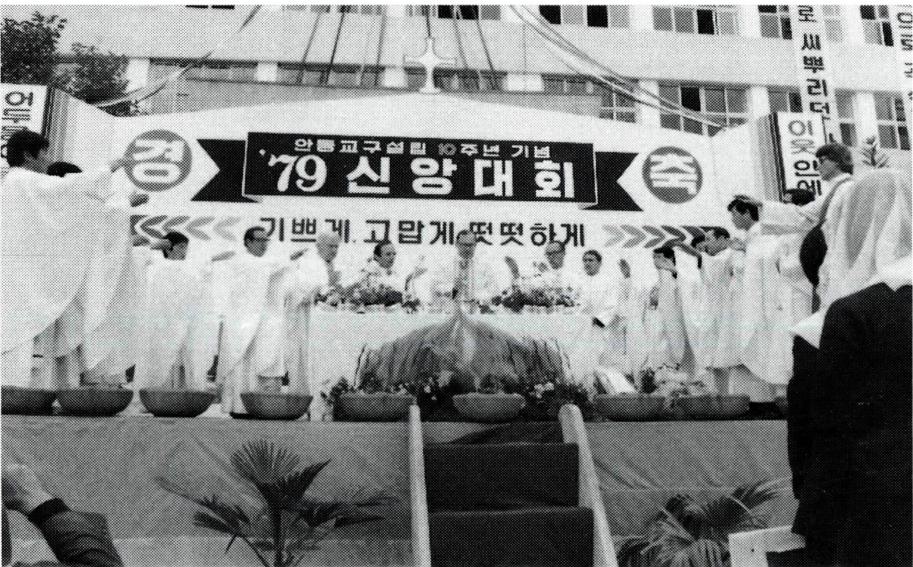 그 동안 교구 지역 안에서는 농민 운동에 감화되어 입교하는 신자들이 늘어나게 되었다. 그 결과 1971년 의성에 '안계 본당' 이 설립된 데 이어 1973년에는 안동의 '동부동 본당' 이 설립되었고, 이후로 안동 '태화동 본당 (1979), 영주 '풍기 본당' (1980), 점촌 '모전 본당' (1981), 영주 '하망동 본당' (1986)이 설립되었다. 그리고 1972년 12월 29일에는 '상지여자고등학교' 가 인가를 받아 이듬해 3월 개교하였으며, 1978년 12월 1일에는 교구 성소 후원회가 발족되었고, 1979년에는 교구 매리지 엔카운터(M.E.) 운동이, 1981년에는 인성회(仁成會) 활동이 시작되었다. 한편 1979년 10월 14일에는 오원춘 사건의 소용돌이 속에서도 교구 설정 10주년 기념 신앙 대회를 개최하였으며(장소 : 상지전문대학), 1984년에는 한국 천주교회 창설 200주년 기념 대회 및 103위 시성식을 기념하여 피정과 기도 운동을 대대적으로 전개하였고, 이듬해 8월 교구 정의 평화위원회가 발족된 데 이어 9월 15일에는 마원 성지에서 순교자 박상근(마티아)의 유해 발굴과 안장식을 가졌다. 이에 앞서 1984년 4월에는 안동시 안막동에서 교구청사 신축 공사가 시작되어 같은 해 12월 17일에 축복식을 거행하였다.