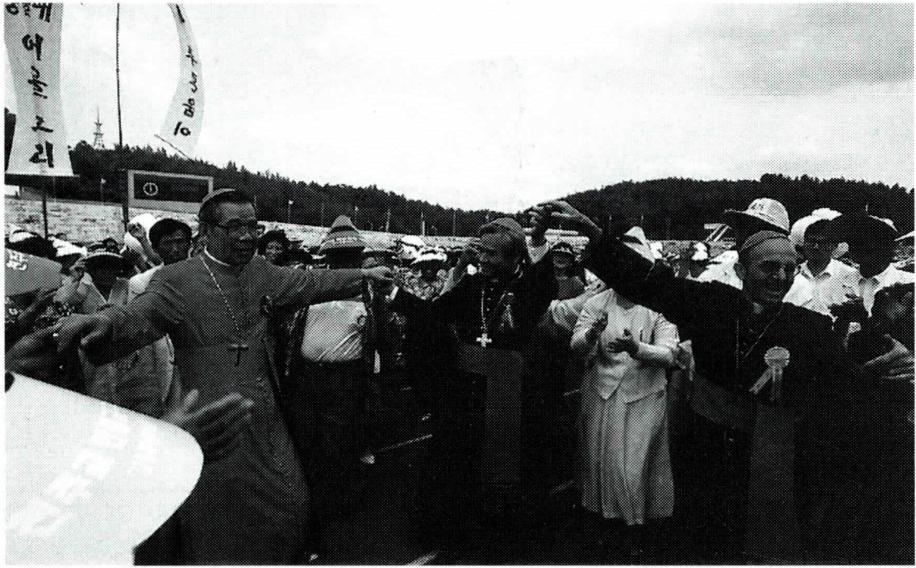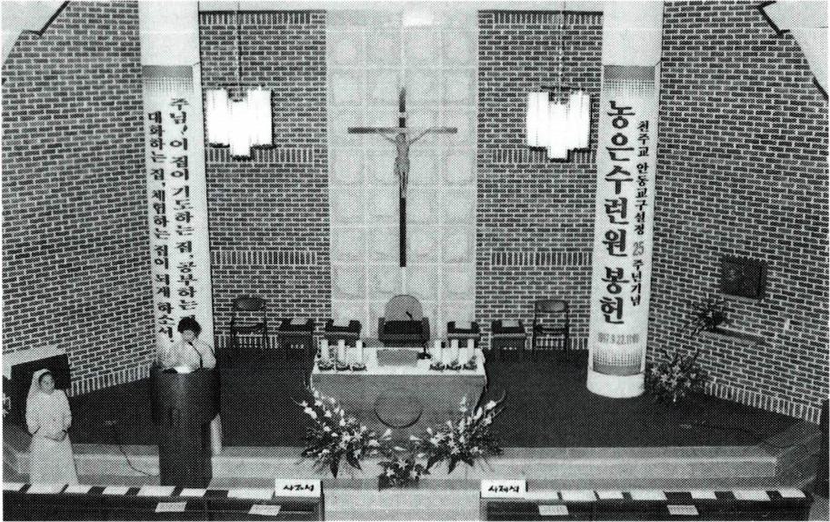 〔농민 운동과 교구의 성장] 이미 설립 직후부터 농촌지역에 관심을 가져오던 교구에서는 1970년대에 들어와농촌 인구가 급격히 감소하자, 농촌 본당 · 공소 살리기 운동을 대대적으로 전개해 나갔다. 1976년에는 공소 주일학교 교사 피정과 농촌 공소 지도자 연수회를 가졌으며, 1977년 4월에는 사목국 안에 '농촌 사목부' 를 설립하였다. 교구 안에서 본격적으로 농민 운동이 전개된 것도 이 무렵이었다. 우선 1977년 10월에는 안동 문화 회관에서 농민 · 근로자 · 양심수를 위한 기도회가 개최되었는데, 이때 류강하 · 정호경(鄭鎬庚, 루도비코) 신부 등이 연행되어 고초를 겪은 뒤에 석방되었으며, 이듬해 11월에는 함창 본당에서 쌀 생산자 대회 및 추수 감사제가 개최되었고, 그 해 12월 27~28일에는 '안동교구 농민회' 가 창립되었다.