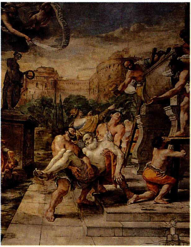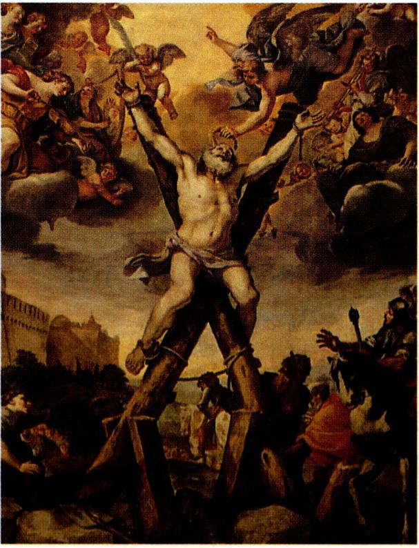 X자 형태의 십자가에 못박혀 순교하였다는 안드레아와 그의 매장.