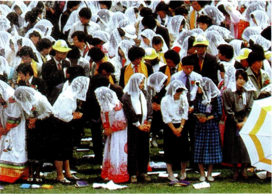 〔평화 예식〕 역사 : 성찬례 거행 안에 평화 예식이 도입된 것은 초세기부터였다. 순교자 유스티노(100~16)는 전구의 기도가 끝나고 성찬례를 위한 예물을 가져오기전에 거룩한 입맞춤으로 인사를 하는 관습을 전하고 있다(《호교론》 I . 65. 68 : 참조 : 마태 5, 23-24). 이 예식은 로마에서 처음에는 보편 지향 기도가 끝난 후 봉헌 전에 이루어졌지만, 4세기 말 또는 5세기 초에 주님의 기도 후 영성체 전으로 위치가 옮겨졌다. 평화의 예식은 이렇게 영성체와 연결되었다.