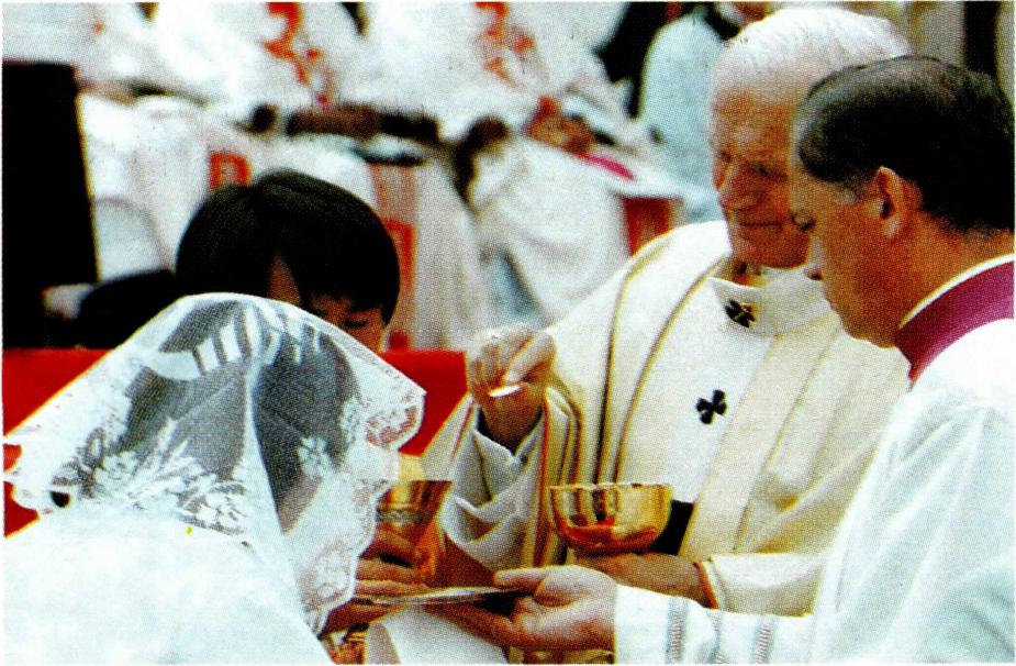 〔양형 영성체〕 초세기에는 동방 교회와 마찬가지로 서방 교회도 모든 신자들이 양형 영성체를 하였으나 중세에 들어서 서방에서는 하나의 형상에 그리스도께서 온전히 현존하신다는 신학을 기초로 신자들의 양형 영성체가 사라졌다(DS 1198~1200 ; 1726~1733 : 1917년 교회법 852조). 그 후 제2차 바티칸 공의회의 개혁으로 양형 영성체에 대한 고대의 전통은 복구되었다(<전례> 55항 ; 1967년의 훈령 <성체 신비>와 1970년의 훈령 <성사적 영성체> ; 《로마 미사 전례서 총지침》 242항). 현행 규정에 따르면 교구장은 적절한 교리 교육을 전제로 하고서 세례 · 견진 · 혼인 · 서품 · 서원 · 독서직과 시종직 · 선교사 파견 · 병자 등의 미사나 예식 때에 성사를 받거나 서원을 하는 당사자와 대부모 · 부모 · 교리 교사 등에게 양형 영성체를 허용할 수 있다. 그 외에도 공동 집전 미사 · 피정 미사 · 은경축이나 금경축 미사 · 새 사제의 첫 미사 등에서도 당사자 또는 참석자들은 성혈을 영할 수 있다. 더 나아가 지역 주교 회의는 일정한 기준과 조건을 정하여 교구장들이 어느 공동체나 신자 집회의 영성 생활을 위하여 매우 중요하다고 판단하면 양형 영성체를 허락할 수 있다. 한국 천주교 주교 회의는 이 모든 경우에 양형 영성체를 할 수 있도록 명시하였다(《한국 천주교 사목 지침서》 80조).