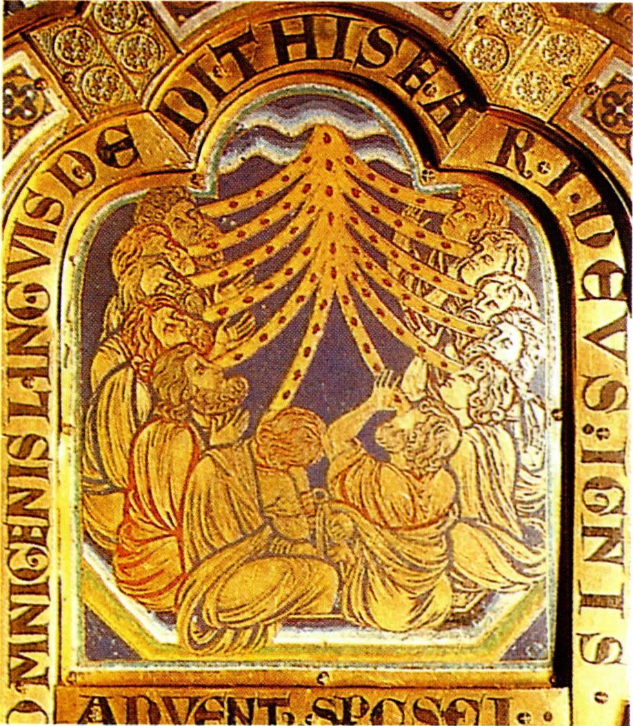 오순절에 사도들에게 내린 불 같은 혀 모양을 한 성령.