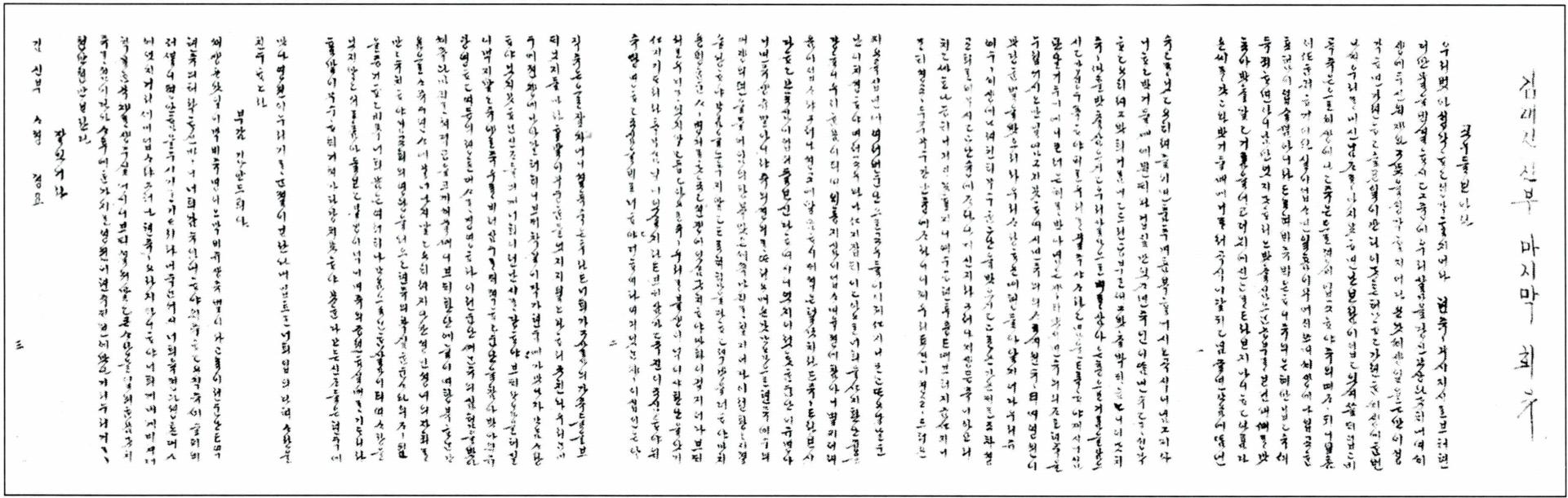 조선 신자들에게 보낸 성 김대건 신부의 마지막 편지(절두산 순교 기념관 소장).