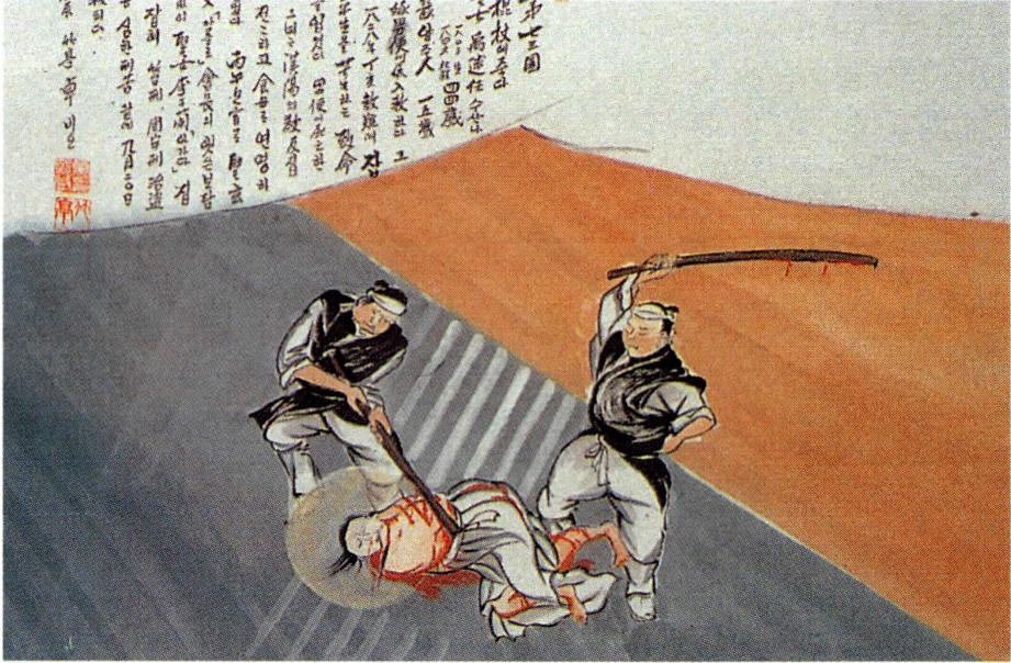 체포되어 매를 맞는 성녀 우술임 수산나(탁희성 작)