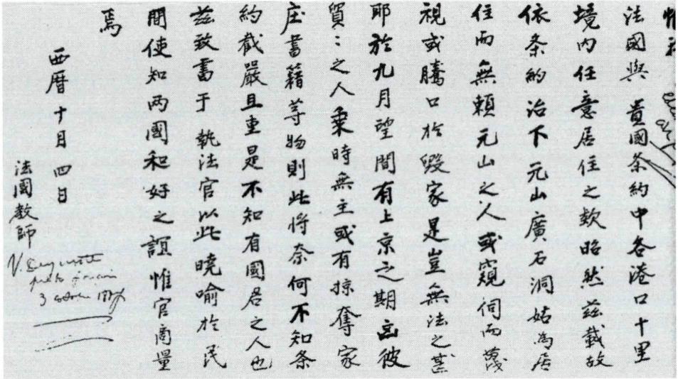 원산교안 발생 후 덕원 부사에게 보낸 그의 항의 서한.