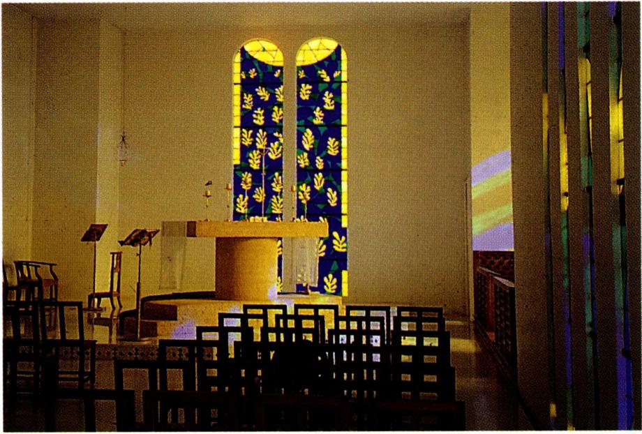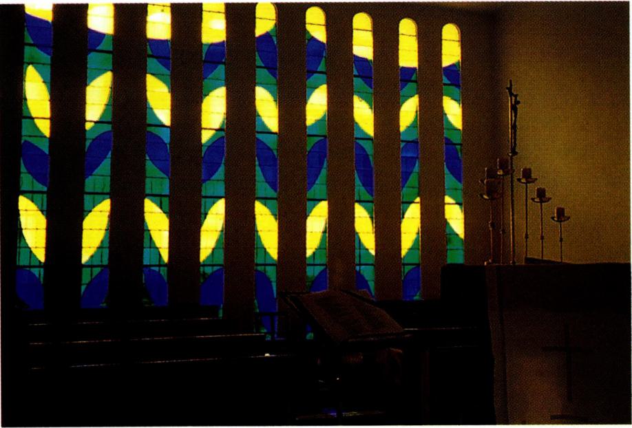 장식 유리창과 빛을 통과시키는 물건들에 쓰이는 '색 유리' 를 갖고 만든 그림. 영어로 유리화를 의미하는 '스테인드 글라스' (stained glass)는 전통적으로 그림 장식 창을 만드는 데 사용된 유리를 가리킨다. 엄격한 의미에서는 색깔 있는 유리나 녹아 있는 유리에 여러 가지 금속 산화물을 첨가해 착색한 유리를 지칭한다. 전적으로 서양에서만, 특히 성당 건축에 사용된 유리화는 어두운 성당 내부를 밝혀 주었으며, 이를 통해 성서의 내용으로 만들어진 유리화는 "빛이신 예수 그리스도" 를 느끼게 하는 역할을 하였다. [유래와 역사] 유리화는 예수 그리스도 시대부터 있었다고 하지만, 중요한 장식 미술로 발전하기 시작한 것은 12세기경이었다. 그 이전에 유리화가 있었음이 기록과 발굴 자료에서 확인되었지만, 그 기술과 방법이 어떠하였는지 세기별로 특징짓기는 어렵다. 그러나 락탄시오 (L.C.F. Lactantius, 250?~321?), 프루텐시오(Prudentius, 348?~ 405?) 예로니모(Hieronymus, 347~419) 등이 초기 성당(Basilica)의 색유리창에 대해 언급한 바 있고, 클레르몽(Clermont)의 주교이자 시인인 시도니오(Sidonius Apollinaris, 430?~487?)는 프랑스 리옹의 색유리창에 대해 묘사한 바 있다. 또한 교황 레오 3세(795~816)는 로마의 바오로 대 성전 색유리창에 대해 기록하였다. 유럽에서는 카롤링거 왕조 이전부터 부자들의 건축물에 색유리창이 크게 유행 하였음이 요크 주교좌 성당이나 영국 선더랜드의 멍크웨 이머스 수도원에서 발견되는 7세기 말경의 색유리창 조각들을 통해 알 수 있다. 초기의 유리창들은 창틀 부분을 얇은 대리석, 설화 석 고(alabaster), 석고 또는 나무판 등으로 메워 놓고 여기에 구멍을 뚫어 색유리를 끼우는 '모자이크' 창의 형태였 다. 이러한 예는 7세기경 세워진 이탈리아 라벤나 외곽 에 있는 성 아폴리나리오(Sant' Appollinare in Classe) 성당 에서 찾아볼 수 있다. 그런데 이러한 초기 방법에서 창틀 에 유리 조각들을 붙일 때 납 선이 쓰였을 것이며, 4세기 경부터는 유리창 끼우기에 납으로 된 띠가 쓰였음이 발 굴을 통해 확인되었다. 최초의 납 띠로 된 유리 도안은 9 세기경 세워진 프랑스 랭스의 세리레메지에르 성당에 있 는 작은 패널화이다(1918 파손) 초기의 색유리창은 그림으로 장식되지 않았고 비교적 간단한 도안의 색유리로만 구성되어 있었는데, 9세기까지는 그림이 도안된 색유리 창에 대한 기록은 없다. 현존하고 있는 가장 오래된 유리 화는 독일의 로르슈에서 발굴된 유리 파편들인데, 이것 들을 복원한 결과 예수 그리스도의 얼굴 부분이었다. 이 를 통해 카롤링거 왕조의 회화와 형식이 유사함을 보여주는 9~10세기 또는 11세기의 작품으로 판단되었다. 하지만 현존하는 최초의 완전한 유리화는 12세기 초에 만들어진 독일 아우크스부르크 성당에 장식된 5명의 예 언자상이다. 카롤링거 왕조와 초기 로마네스크 건축에서는 구조상 창을 내기가 어려워 수도 적었고 크기도 작았기 때문에, 화려한 장식이 창쪽보다는 넓은 벽과 둥근 아치형 천장에 집중되어 있다. 그러나 후기 로마네스크 양 식과 고딕 양식의 발달은 창 만들기를 더욱 강조하였다. 이때부터 유리화가 주된 예술 양식으로 자리잡게 됐으며 북유럽에서는 교회 장식의 가장 중요한 요소가 되었다. 그림이 그려진 유리화는 보통 서유럽에서 발명된 고유한 것으로 여겨져 왔다. 하지만 초창기 발전 과정에 모호한 부분이 아직도 많이 남아 있다. 극동 지역인 예멘에서도 납선을 사용하지 않고 석고의 틀을 이용하여 비교적 간단한 색 구성으로 배열되어 나름대로 발전되었지만, 합리적으로 발전되지는 못하였다. 12세기부터 유리화는 건물을 위한 하나의 예술로 자 리잡았다. 그리고 건축과 긴밀하게 연결되었으며, 그에 따라 세기별로 발전과 변화가 이루어졌다. 12세기의 색 조화는 아주 간단하게 이루어졌다고 볼 수 있다. 푸른 색 과 함께 붉은 색이 뒤 배경에 어울려 있는 경향이나 노란 색의 바탕 위에 녹색이 튀어나오는 것 같은 느낌, 분홍색 과 노란 색 위에 자주색이 돌출되는 느낌을 주었다. 12 세기 유리화의 특징인 가장자리의 둘레 부분은 넓은 폭 과 풍부한 요소의 그림들이 들어 있는데, 나무 줄기와 잎 새 혹은 리본이 엮인 듯한 느낌, 또한 환상적인 동물의 출현 등 여러 복합적인 요소들에 의해 더욱 장식적으로 보여졌다. 또한, 여러 가지 순서에 의해 그려지는 인물의 경우에도 간단하면서 활동적인 느낌으로 묘사되었다. 1145~1150년 사이에 발표된 법령은 이 시기에 나온 정교하면서도 세련된 유리 그림들을 수도원에 사용하지 못하도록 하였다. 그로 인해 비잔틴과 이슬람 문양에서 힌트를 얻어 기하학적인 문양을 납 선의 구성에 그대로 이용하여 장식적으로 꾸며 놓은 시스테르시엔(cistercienne)이 출현하였다. 유리화는 12세기 초부터 합리적이고 실용적으로 발전됐는데, 중세 후기 유리화의 정교함과 세련됨은 주제의 자연적인 해석과 표현에 있어서 당대 어떤 화가들의 기 량과도 견줄 수 있는 예술성을 지니고 있었다. 12세기에 중요한 작품으로는 파리 근교인 생 드니(Saint-Denis) 수도원에 남아 있는 것과 파리의 생트 샤펠(Sainte-Chapelle) 의 15개의 창에 1