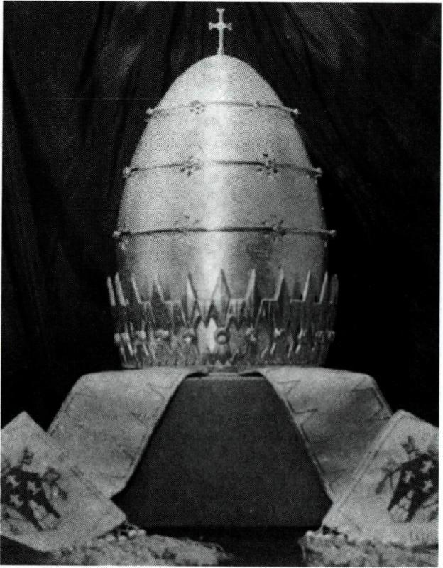초대 교회 때부터 교황이 새로 선출될 경우 대관식에 서 사용한 관. 또한 교황이 성 베드로 성당이나 라테란 성당에서 봉헌되는 미사의 성대한 입당식에서 사용하기 도 했다. 처음에는 주교관과 별다른 차이가 없었으나 교황의 권위가 확립 되면서 구별되기 시작하였다. 원래 일 층으로 되었으나 1295년 교황 보니파 시오 8세에 의해 이중관이 되었고, 14 세기에 이르러 삼중관으로 되었다. 이 3개의 층은 교황이 가지는 3개의 직무 즉 통치권, 신품권, 교도권을 뜻한다. (← 삼중관) 〔韓榮萬〕