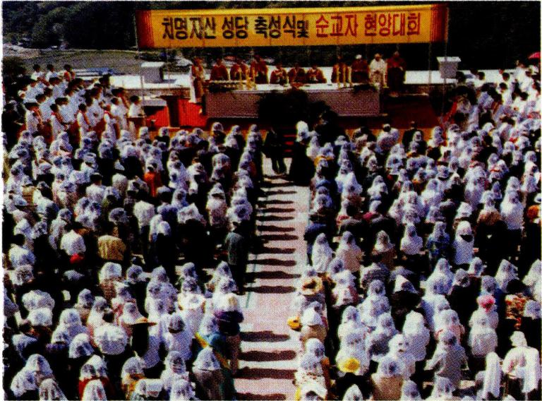 이 시기부터는 순교자 현양 운동이 본격화되었다. 신유박해 때 유항검과 그의 가족이 순교한 후 폐족되자 노복들과 친지들은 그들의 시체를 거두어 고향에서 1km가량 떨어진 김제군 용지면 제남리 바우백이에 가매장하였다. 그러나 1914년 그 땅 소유주의 요청으로 유항검가족 묘를 이장할 수밖에 없어서, 전주 본당 보두네 신부와 회장단은 사순 시기 때 파묘하여 4월 19일 치명자산정상에 안장하고, 1949년 7월 17일 전동 본당 자모회가 주축이 되어 14척 높이의 십자가를 세웠다. 그보다 앞서 되재 본당은 1939년 기해박해 100주년을 맞이하여 천호 성지에 있는 순교자들의 무덤 앞에 대리석 십자가 비를 세우고 축복식을 가졌다. 1949년 9월에는 평신도의 신앙 재무장과 평신도 사도직의 조직적 활동을 활성화하기 위해 18개 본당의 대의원들이 모여 '가톨릭 연맹' 을 조직하고 평신도 역할과 사명을 다짐하였다. 군산 본당에서는 가톨릭 연맹, 청년회, 성모성심회 등이 신자 배가운동을 벌여 예비 신자 180명을 인도하였다.