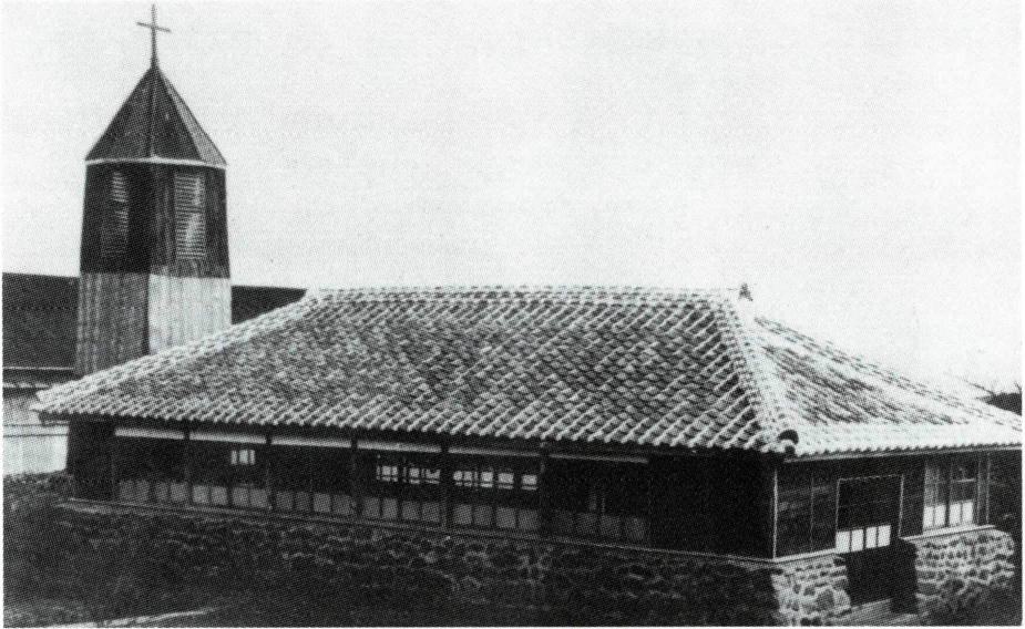 〔복음의 전래와 순교자의 탄생〕 천주교 신자에 의해 처음 제주 지역에 천주교 신앙이 알려진 것은 1801년의 신유박해(辛酉迫害)로 황사영(黃嗣永, 알렉시오)의 부인 정난주(丁蘭珠, 마리아)가 대정현의 노비로 유배되면서부터였다. 이어 1845년 9월 27일에는 제3대 조선교구장 페레올(Ferrèol, 高) 주교, 다블뤼(Daveluy, 安敦伊) 신부 등과 함께 귀국하다가 표류하던 김대건(金大建, 안드레아) 신부가 제주 서쪽의 죽도(竹島, 즉 차귀도) 인근에 도착하여 용수 포구(현 북제주군 한경면 용수리)에서 배를 수리한 뒤 충청도로 떠났다. 그러나 정난주는 이웃에 복음을 전파하지 못하고 1838년에 사망하여 그 인근(현남제주군 대정읍 동일리)에 묻혔으며, 김대건 신부 일행도 제주도민들과 접촉할 여유를 갖지 못하였다.