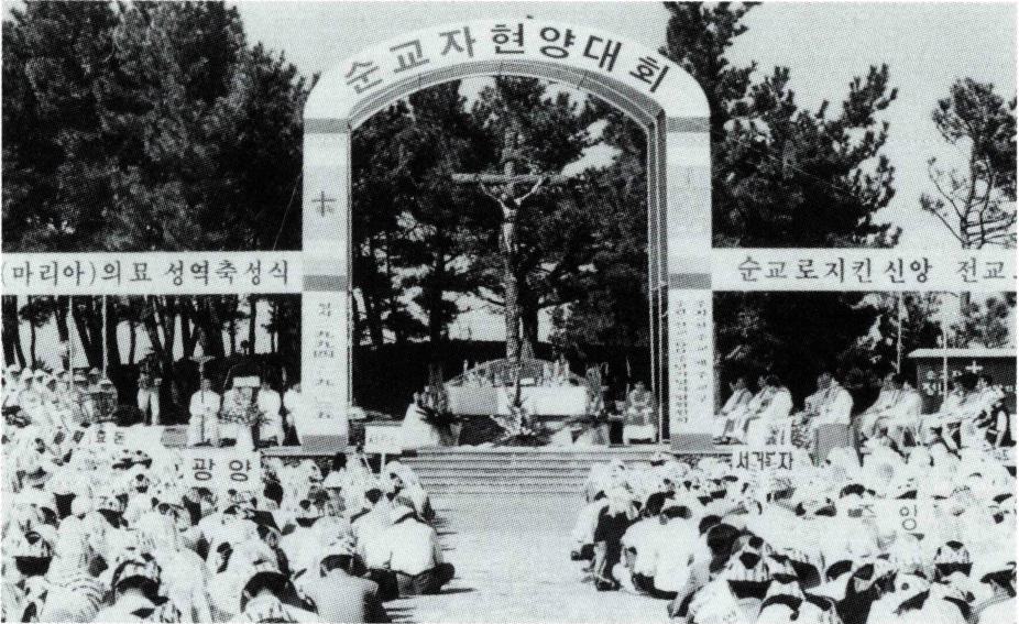 〔본당의 확대와 교구의 성장〕 1980년대는 교회 안팎으로 시련과 기쁨이 교차하던 시기였다. 특히 한국 천주교회에서는 1984년에 맞이하게 될 교회 창설 200주년 기념 행사들을 준비해 가고 있었으며, 한국 순교 복자 103위의 시성을 위해서도 많은 노력을 기울이고 있었다. 이에 제주교구에서도 1980년 7월 5일 서귀포 중앙 본당에서 신축한 성당을 봉헌하면서 본당 명칭을 '서귀 포 복자 본당' 으로 개칭하였다. 이어 1981년 10월 25일에는 신제주에 신축한 성당 봉헌식이 있었고 11월 1일자로 '신제주 본당' 이 설립되었으며, 11월 29일에는 '금악 준본당' (1985년 10월 본당 승격)이 설립되었다.