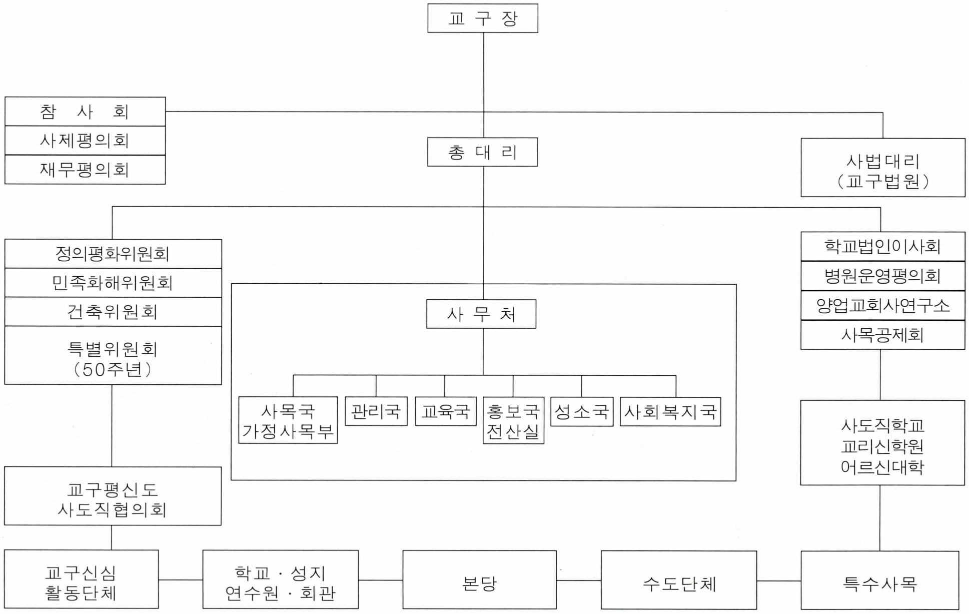 충청북도 청주시 . 충주시와 음성군 · 진천군 · 증평군 · 괴산군 · 청원군 · 보은군 · 옥천군 · 영동군 등 2개 시와 8개 군을 사목 관할 구역으로 하는 주교구. 주보는 '성가정' . 주교좌는 내덕2동 본당. 1953년 9월 1일 서울 대목구에서 '충청북도 감목 대리구 로 설정됨과 동시에 그 사목이 메리놀 외방전교회에 위임되었으며, 1958년 6월 23일에 '청주 대목구 로 설정되었고, 1962년 3월 10일 한국 천주교회의 교계 제도 설정과 동시에 청주교구' 로 승격되면서 대구 · 부산 · 마산 · 안동교구와 함께 대구 관구를 형성하였다. 대목구 설정 당시에는 충청북도 제천군(현 제천시)과 단양군도 사목 관할 구역이었으나, 1968년 이루어진 교구 경계 조정 협의와 다음해 5월 1일자의 교황청령에 의해 이 지역은 1965년에 설정된 원주교구 관할로 이관되었다. 청주교구의 사목권은 1970년 10월 3일 메리놀 외방전교회로부터 한국인성직자에게 이양되었다. 〔역대 교구장〕 초대 파디(J. Pardy, 巴智, 야고보) 주교(1958. 7. 4~1969. 6. 28), 2대 정진석(鄭鎮奭, 니콜라오) 주교(1970. 6. 25~1998. 5. 29), 3대 장봉훈(張奉勳, 가브리엘) 주교(1999. 6. 26~현재). 〔교 세〕 1959년 18,600명, 1969년 48,893명, 1983년 48,805명, 1993년 93 662명, 1999년 118,099명, 2002년 127 ,995명.