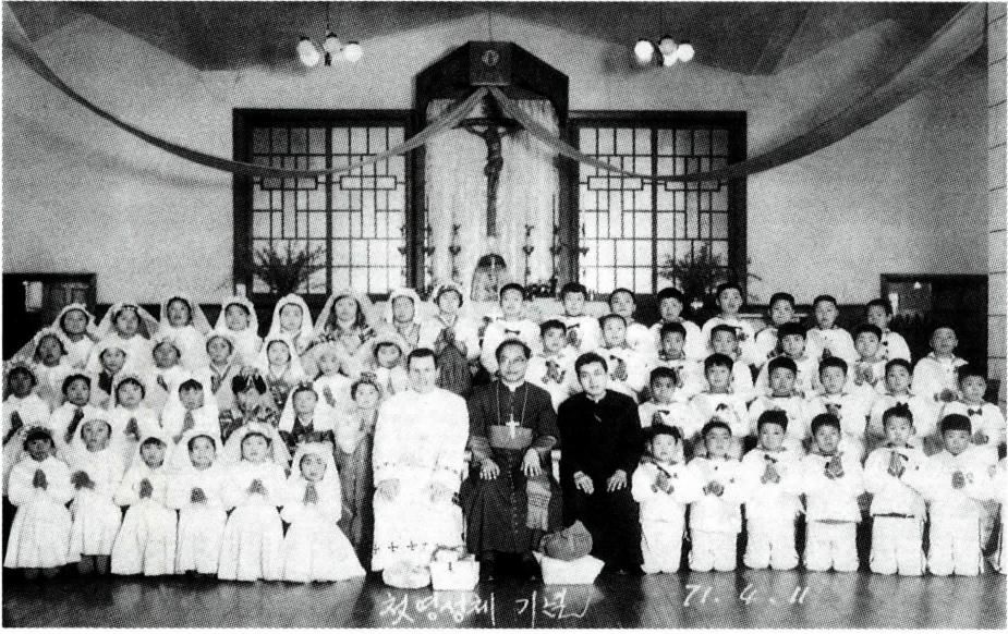 〔교구의 성장과 현재〕 청주교구에서는 정진석 주교 착좌 이후인 1971년 9월 목행동 본당을 설립하였으며, 12월에는 꾸르실료 운동을 교구에 도입하였다. 이어 1974년 9월에 사직동 본당이 설립되었고, 1976년 가톨릭 회관 축복식을 가졌으며, 같은 해 9월 12일에는 오웅진(吳雄鎮, 요한) 신부에 의해 '꽃동네' (음성군 맹동면 인곡리 소재)가 설립되어 사랑의 집 축복식을 가졌다. 또 1977년 1월 16일에는 교구 평신도 사도직 협의회가 창설됨으로써 평신도 사도직 활동이 활성화되는 계기를 마련하였고, 7월 30일에는 가톨릭 농민회 충북 지부 연합회가 조직되었다. 진천 본당에 재임하던 장봉훈(張奉勳) 신부가 한국 순교 복자 수녀회의 김우분(막달레나) 수녀를 백곡에 파견하여 배티 성지의 성역화 사업을 시작한 것도 이 무렵이었다.