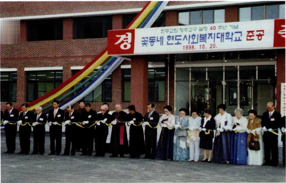 1997년 1월 교구에서는 교구 법원을 설립하였고, 3월에는 내덕동 연수원 축복식을 가졌다. 그리고 1998년 3월에는 교구 설정 40주년 기념 사업으로 추진해 온 한국 최초의 특성화 학교인 양업고등학교 개교식을, 3월 20일에는 청주시 주중동에서 청주 성모병원 개원식을 가졌으며, 11월 30일에는 현도면에서 꽃동네 현도사회복지대학교 준공식을 갖고 이듬해 3월에 개교하였다. 그러던 중 1998년 5월 29일 교구장 정진석 주교가 서울대교구장으로 서임되자, 6월 23일 교구 설정 40주년 기념식과 정진석 주교 환송식을 치른 다음, 29일의 참사회를 통해 김원택(金元澤, 프란치스코 사베리오) 신부를 교구장 직무 대행으로 선출하고, 다음해 5월 1일부터 6월 24일까지 민족 공동체 복음화를 위한 고리 기도를 실시하였다.