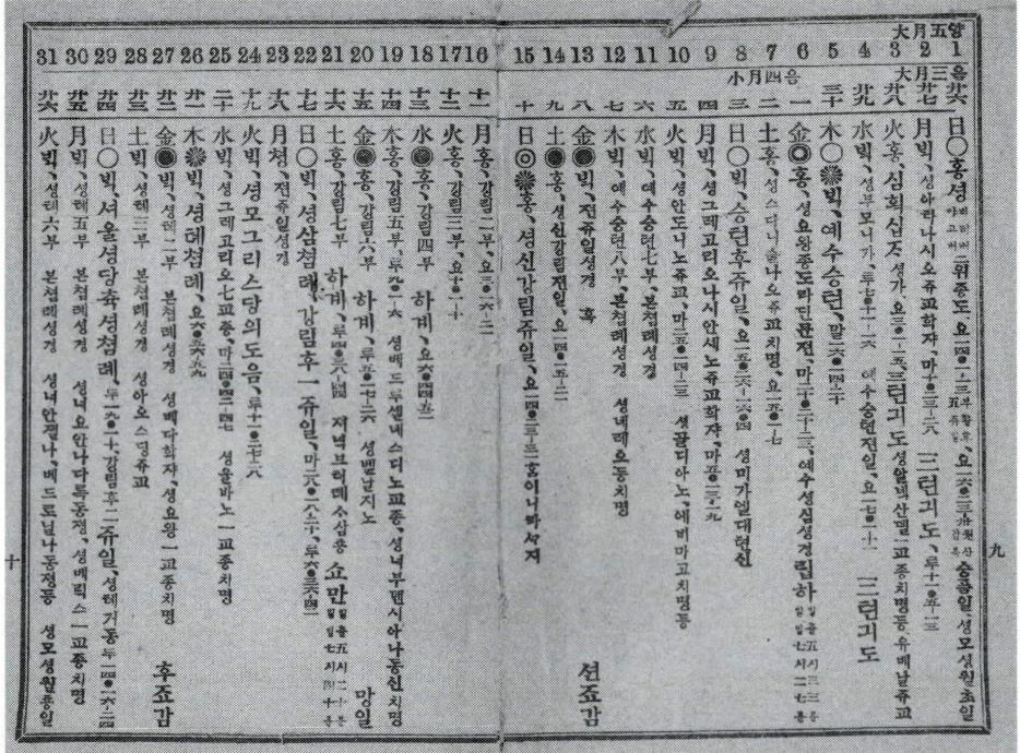 축일표 祝日表 〔라〕calendarium 〔영〕christian calendar