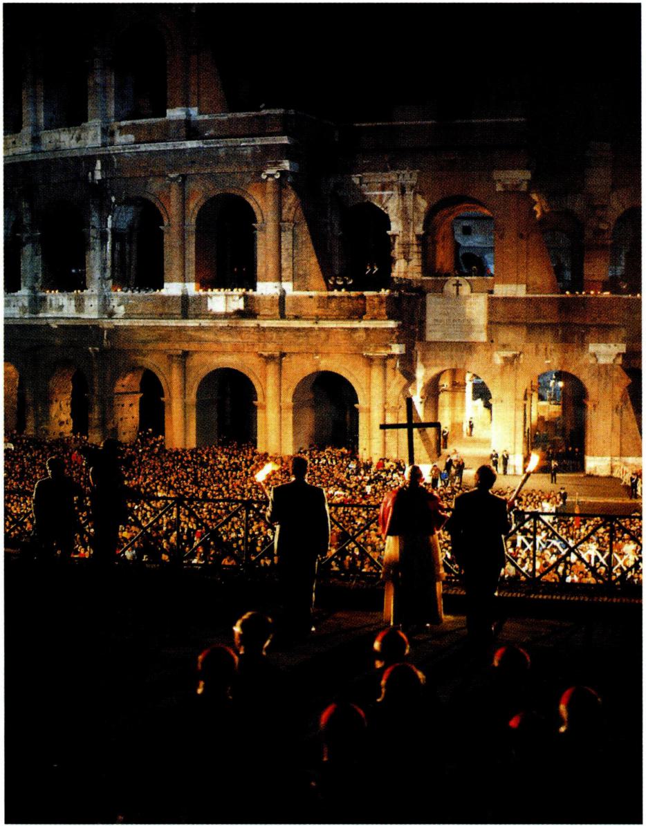 콜로세움은 로마의 흥망성쇠를 나타내는 상징이기도 하다. 베다 존자는 "콜로세움이 서 있는 한 로마도 흥하리라. 콜로세움이 무너지는 날에는 로마도 멸망하리라. 로마가 멸망하는 날에는 이 세상도 멸망하리라"라고 읊었다. 콜로세움은 먼저 야만족들의 로마 약탈로 파괴되고, 그 후 여러 차례의 낙뢰와 지진 등으로 훼손 · 방치되었으며 다른 건물을 짓기 위해 이곳에서 석재를 가져가기까지 하였다. 1490년부터 원형 경기장 내부에서 그리스도의 수난과 죽음을 묵상하는 의식이 재현되었지만, 이교적인 부분이 포함되었다고 하여 1500년 중엽 교황 바오로 3세(1534~1549)에 의해 중지되었다, 1790년 교황 베네딕도 14세(1740~1758)는 원형 경기장의 훼손을 금지하는 칙령을 반포하고 순교지로서의 역사적 가치를 부여하여 콜로세움을 최대한 복원하고 이곳에 십자가를 세웠다. 그리고 교황 비오 7세(1800~1823)가 재차 복구 작업을 벌여 철리오 언덕 옆에 벽돌 제조장을 설치하여 거대한 축대로 넘어지지 않게 보수하였으며, 그 이후에도 후임 교황들에 의해 여러 차례 복구 작업이 이루어졌다. 오늘날에는 매년 파스카 금요일에 교황이 이곳에서 신자들과 함께 십자가의 길 예식을 주례한다. (→ 로마 ; 십자가의 길)
