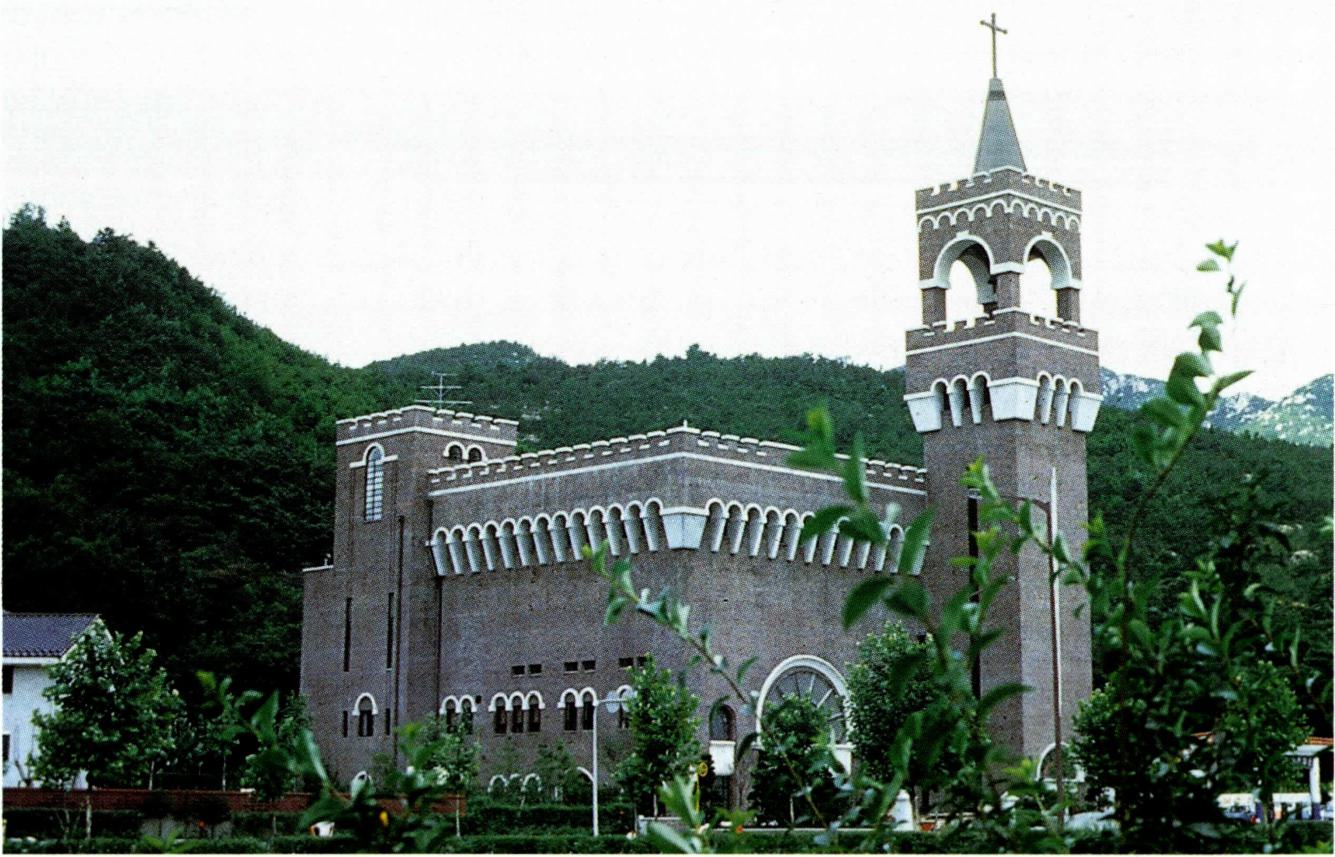 포스트모더니즘 형식을 보여 주는 성당 건축(과천 성당) .