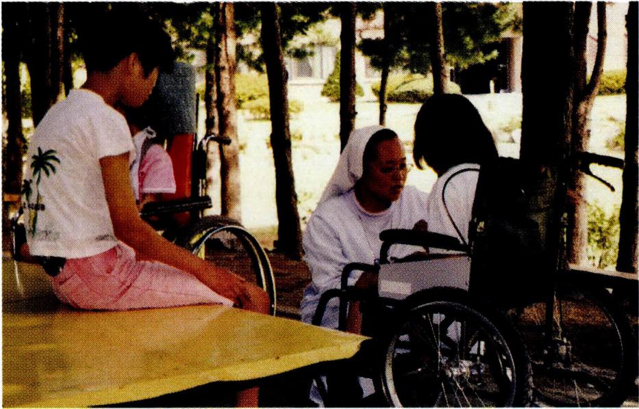 ▲ 한국에 파견되어 아네트의 집에서 환자를 보살피고 있는 외국인 수녀. 창설자 하이디 브라우크만 총원장 수녀(오른쪽). .