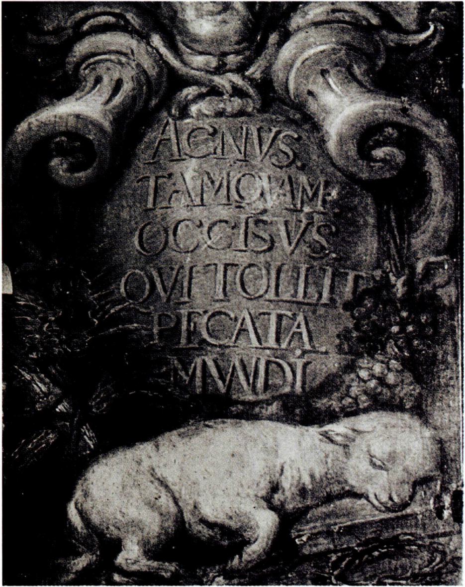 상징으로 '하느님의 어린 양 을 사용하는 경우에는 성체나 제물로서의 예수를 의미하며, 대체로 어린 양은 십자가 또는 기(旗)와 후광이 있는 모습으로 그려진다. (⇦ 고양 ; 아뉴스 데이 ; 어린 양 ; 양 ; → 과월절 ; 메시아 ; 빵 나눔 ; 성찬 전례 ; 세르지오 1세 ; 영성체 ; 예수 그리스도 ; 요한 ; 하느님의 종)