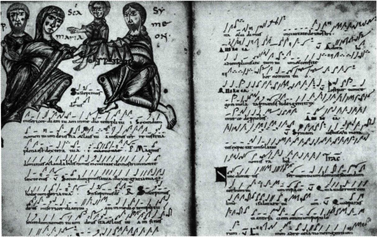 부활 대축일 미사 때의 그레고리오 성가 도입부.