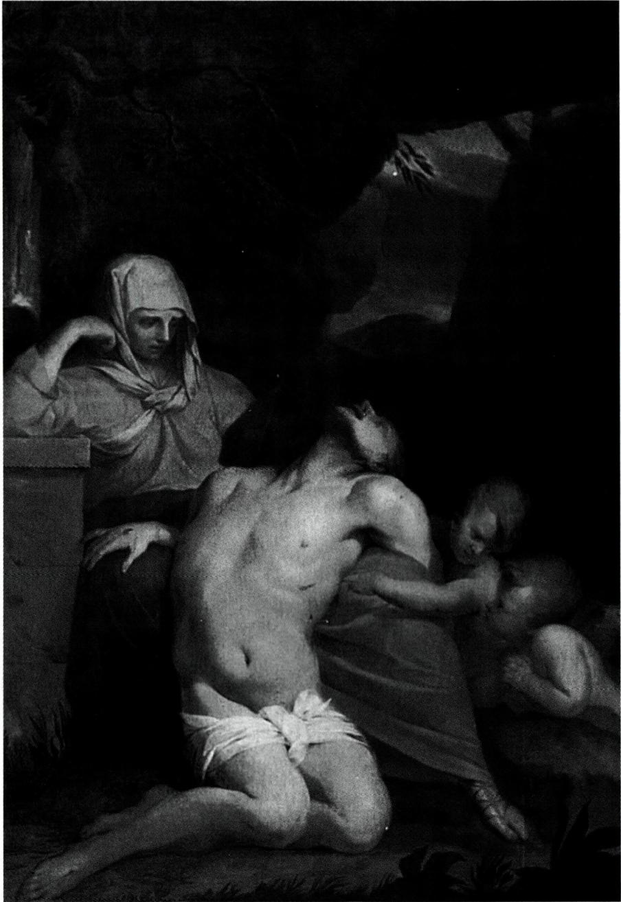 호머의 반신상을 완성하고 있는 아리스토텔레스.