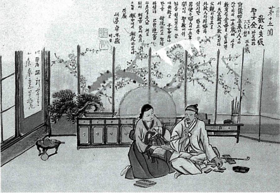남편에게 신앙을 권유하는 김 바르바라(탁희성 작)