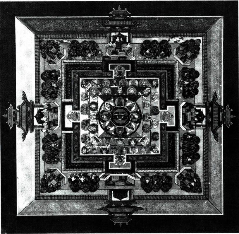 고대 인도로부터 기원하는 것으로, 깨달음의 세계를 상징적으로 표현한 일종의 기하학적 양식, 또는 우주 법계(法界)의 온갖 덕을 망라한 불화(佛書)의 하나. 〔어의 및 기원〕 산스크리트어의 만달라(Mandala)를 음역한 것으로 만다(Manda)는 진수 또는 본질을 의미하고, 접미어 라(la)는 얻음〔得〕을 뜻한다. 따라서 만다라는 본질을 터득한다' 는 의미