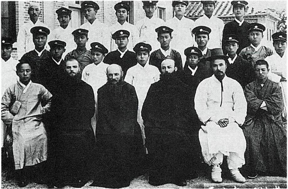 1911년 9월 16일에 베네딕도회에서 설립한 사범 학교. 1909년 뮈텔(G. Mutel, 閔德孝) 주교의 요청으로 한국에 진출한 베네딕도회는 1910년에 실업 학교인 숭공학교(崇工學校)를 설립한 데 이어 이듬해에는 2년제 사범 학교인 숭신학교를 개교하였다. 교사(校舍)는 당시 베네딕도 수도원이 있던 지금의 가톨릭 대학 신학부 자리에 위치하였고, 초대 교