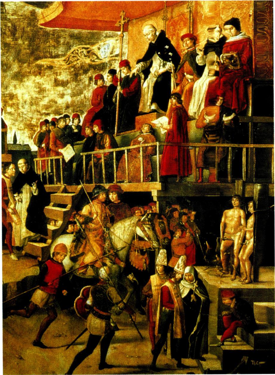 이단자 색출과 심문을 위해 그레고리오 9세 교황(1227~ 1241)이 설립한 법정. 이를 "마녀 재판"이나 "종교 재판" 이라 번역하는 것은 내용을 제대로 이해하지 못한 오역 (誤譯)이다. 이단 심문을 단순히 제도로 설명할 수는 없다. 역사적 상황에 따라서 여러 형태의 이단에 대응하는 법정이 있 었기 때문에 그 법정들을 구분하지 않고 말하는 것은 본 질을