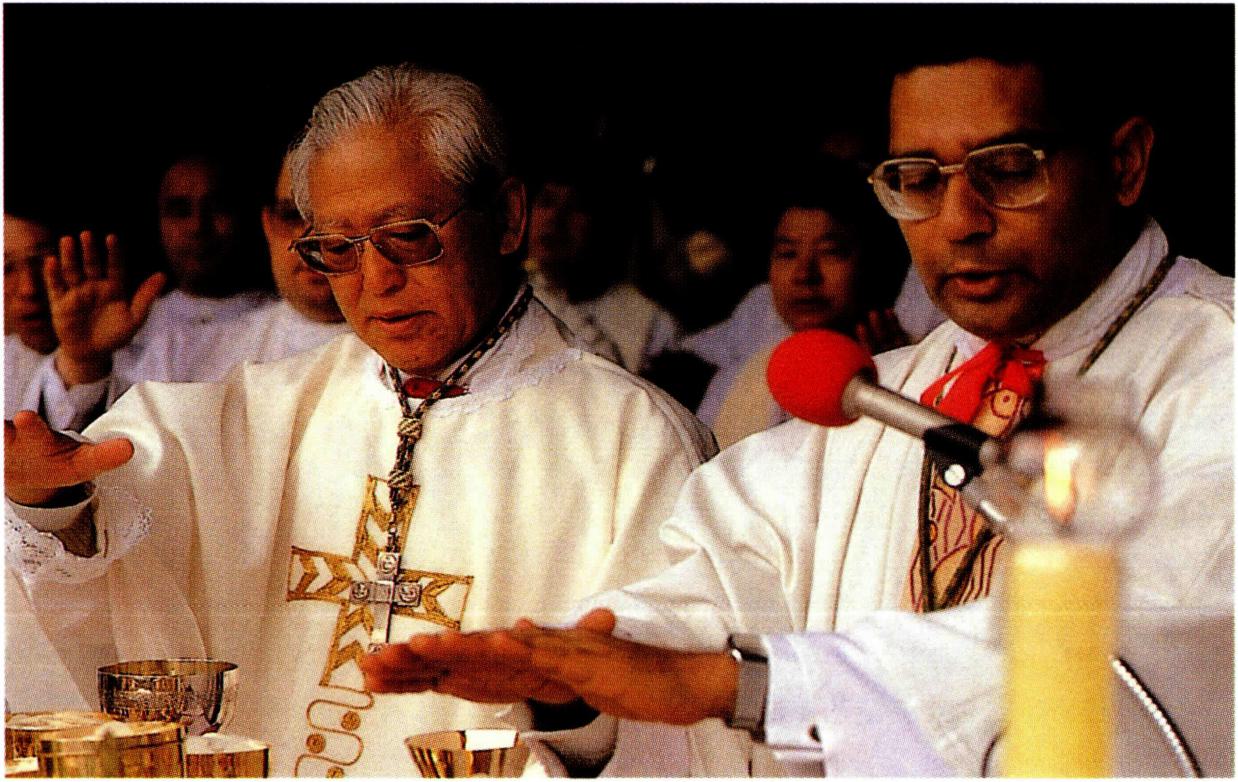 어떤 물건이나 사람의 머리 위에 손을 들고 행하는 전례적인 행위. 하느님의 영, 힘 또는 권한을 부여하는 표시로 축성과 축복 예식에 많이 사용된다. 교회 전례에서 가장 자주 사용되는 동작 중 하나로, 모든 전례 동작 가운데 첫 번째이자 가장 중요한 동작이며, 특히 견진성사 · 고해성사 성품성사 · 병자성사 예식의 핵심 동작으로 간주하고 있다. 〔성서에서의