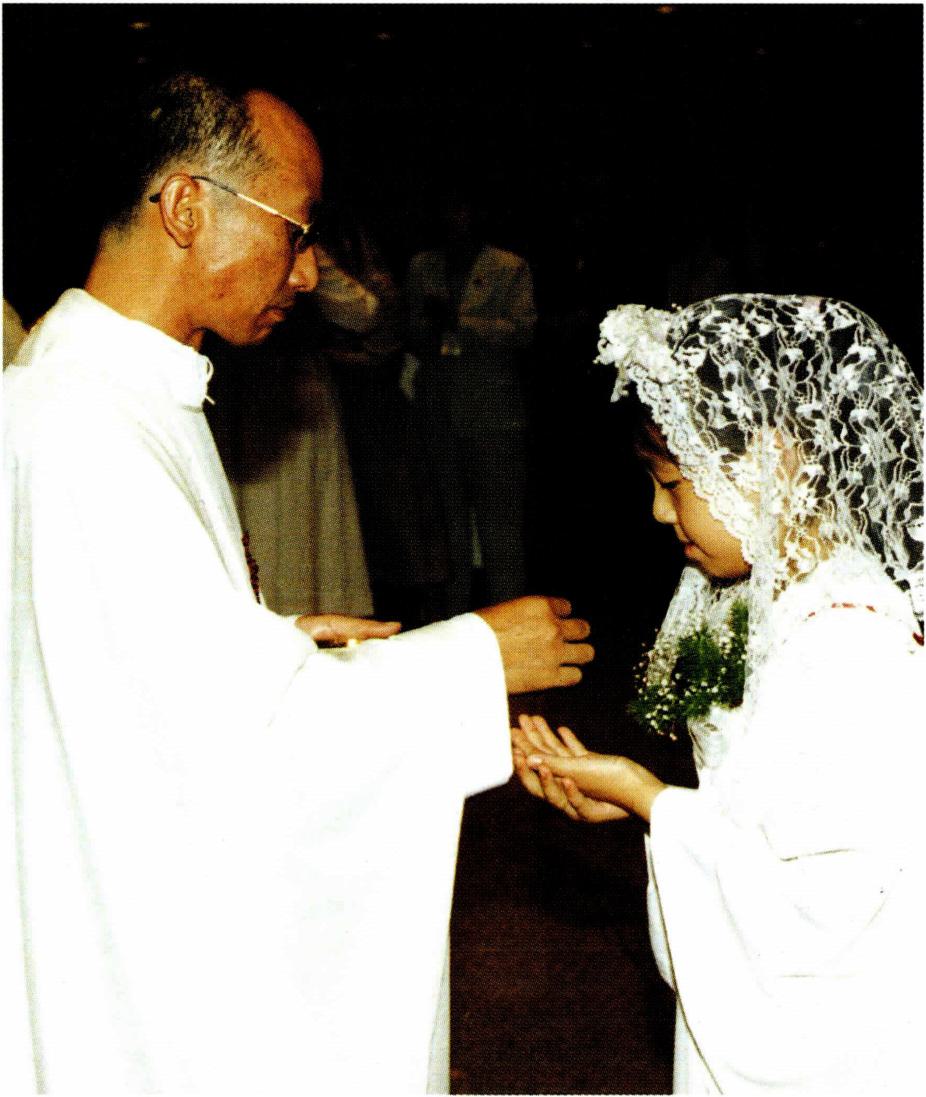 세례를 받은 사람이 처음으로 영성체를 하는 것. 일반적으로 유아 세례를 받은 어린이가 분별력을 가지는 나이가 되어 일정 기간의 교육을 받은 후 고해성사를 받고 영성체를 하는 것. [역 사] 첫 영성체는 항상 다른 입문 성사인 세례와 견진과 함께 동시에 이루어졌다. 이런 의미에서 오늘날에도 동방 교회에서는 유아에게 영성체가 허용되고 있다. 그러나 중세 중기의