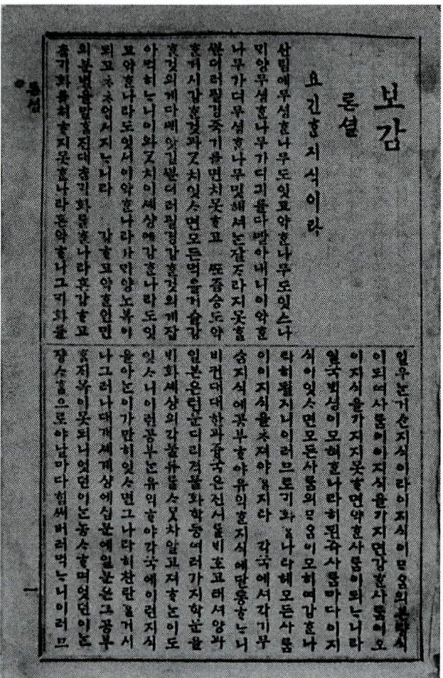 1906년 10월 19일에 창간된 의 별지 부 록. 《경향잡지》의 전신. 드망즈(Demange, 安世華) 신부 가 편집 겸 발행인이었고, 발행소는 경향신문사였으며 발행 형태는 국판 8면의 순한글 주간지였다. 의 편집과 구성에 참여한 사람들이 편찬을 담당하였는데, 신문이 주로 일반 시사 문제나 계몽 활동에 중점을 둔 반면 〈보감〉에는 교회 신자들을 대상으로
