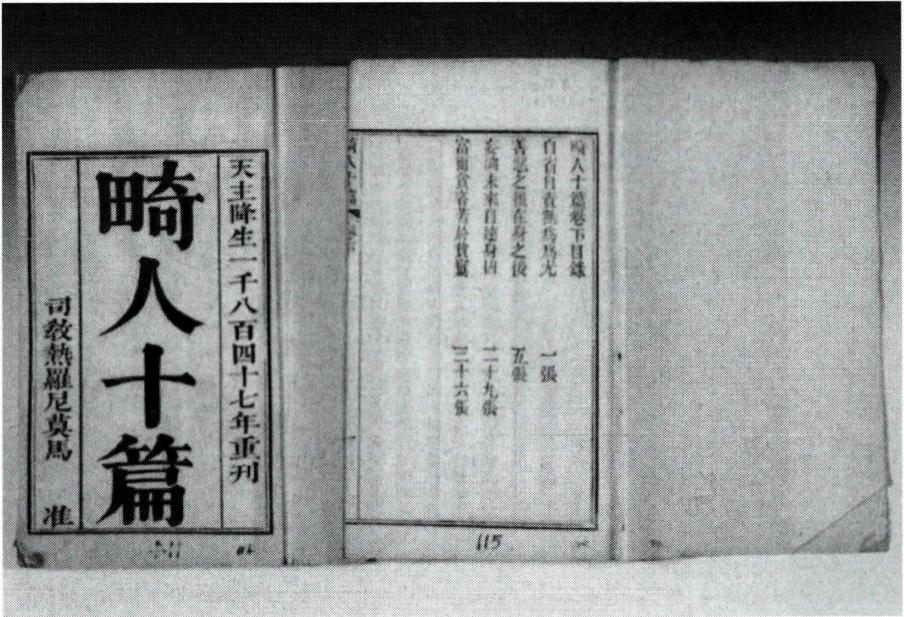중국에서 활동하던 예수회 선교사 마테오 리치(Matteo Ricci, 利瑪竇)가 저술한 서양 윤리서. 리치가 명말(明末) 의 건안왕(建安王)을 위해 저술한 것으로, 서양인들의 우정과 사고(思考)에 대한 개념을 간결한 대화체로 서술 하고 있다. 1595년(萬曆 23) 풍응경(馮應京)과 구여기 (瞿汝夔)가 서문을 붙여 남창(南昌)에서 1권 1책으로 간행하였고,