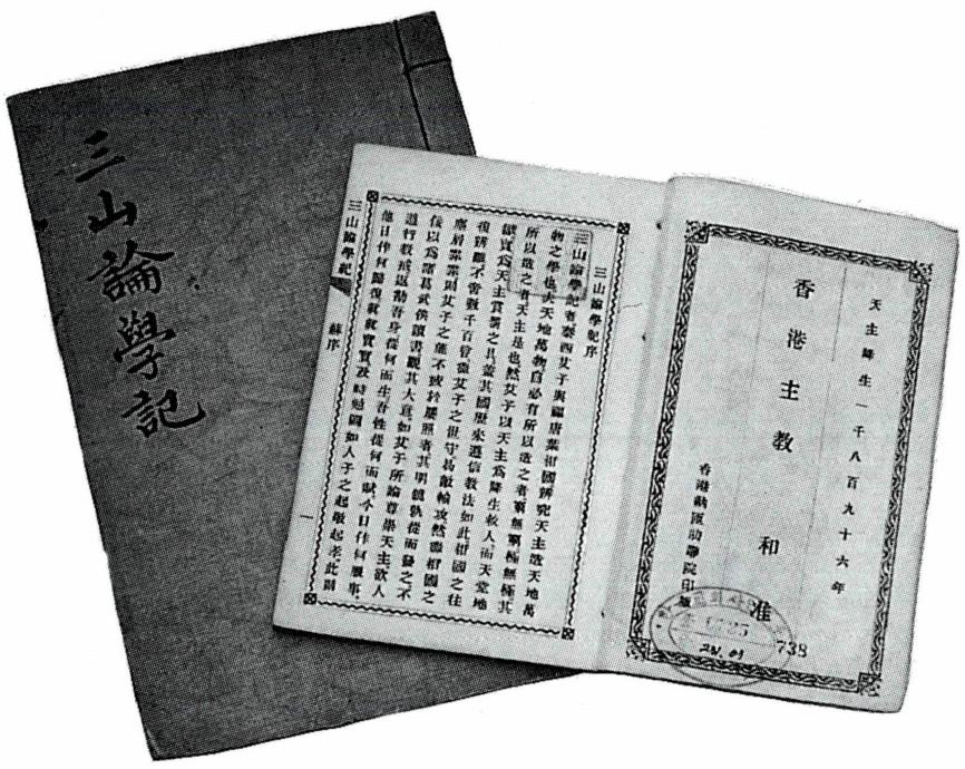 이탈리아 출신의 예수회 선교사 알레니(G. Aleni, 艾儒 略)가 한문으로 저술한 천주교 교리서. '삼산' 은 복주 (福州)에 있는 지명이다. 일반적으로는 그 초판이 1625 년에 항주(抗州)에서 간행된 것으로 알려져 있으나, 그 내용으로 볼 때는 알레니 신부가 복주에서 전교할 당시 인 1627년(天啓 7)에 저술하여 그 이후에 간행한 것으로 생각된다.