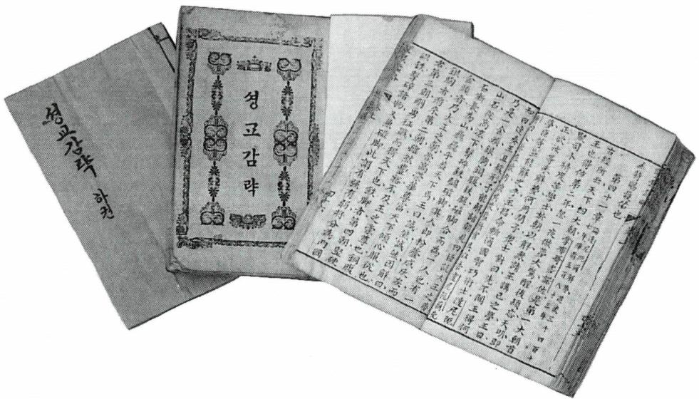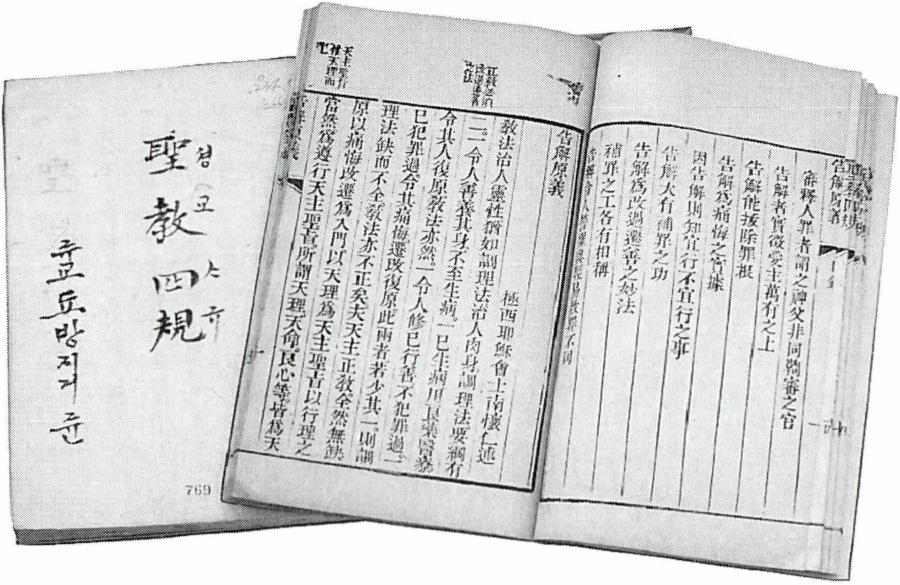 ① 한문본 : 포르투갈 출신의 예수회 선교사 디아즈(E.Diaz, 陽瑪諾, 1574~1659)가 저술한 복음 성서 해설서. 교회력에 따라 연중 주일과 축일에 관련된 신약 4복음서의 내용들을 한문으로 번역하고 필요한 부분에는 주해(註解)를 붙여 차례로 설명한 것으로, 한문으로 저술된 최초의 신약 관련 서학서(西學書)이다. 1636년 북경(北京)에서 8책 14