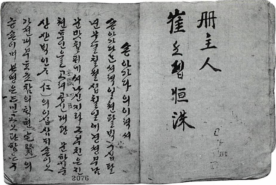 최양업(崔良業, 토마스) 신부의 넷째 동생인 최신정(崔信鼎, 델레신포로)의 아내 송 아가다(1838~1930)의 전기(傳記) . 작자 미상이며, 15×16cm 크기의 한지 76쪽에 달하는 한글 필사본이다. 책 끝에 '1927년 정유(丁酉), 1933년 계유년 종(癸酉年終)' 이라고 되어 있는 것으로 보아 1927년에 집필을 시작하여 1933년에 완성한 것으
