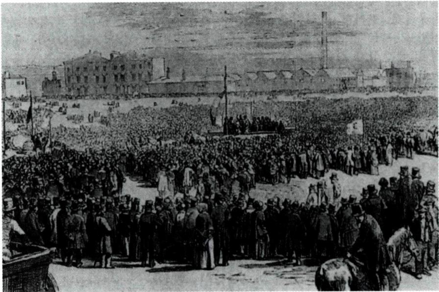 박해 시대의 사적지. 서울 마포구 노고산동에 있는 서 강대학교 뒷산으로, 본래의 이름은 한양(漢陽)의 서쪽 끝에 있다는 뜻으로 '한미산' (漢尾山)이라 하였는데, 후 에 '할미산' 〔老姑山〕으로 변하였다. 1839년 9월 21일 (음 8월 14일)에, 앵베르(Imbert, 范世亨) 주교와 모방 (Maubant, 羅伯多祿) · 샤스탕(Chastant, 鄭牙各